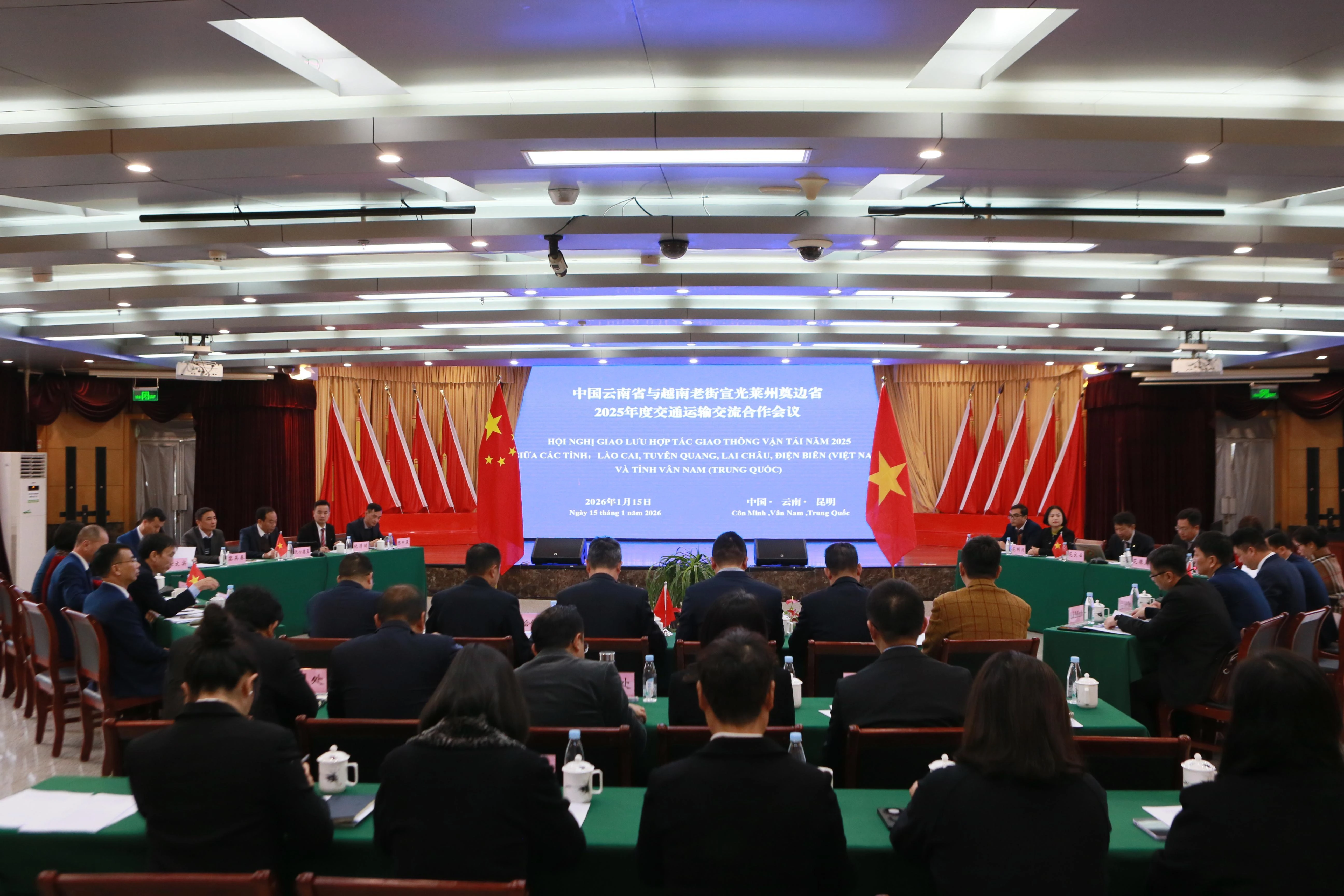1月15日上午,中国云南省与越南老街宣光莱州奠边省年度交通运输交流合作会议在昆明举行。会议由省交通运输厅主持,越南老街、宣光、莱州、奠边四省建设厅副厅长率团参会。