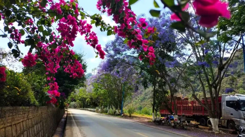 广南公路分局打造“四季有花、步步皆景”绿美公路,串联坝美世外桃源等景点,冬樱花成网红打卡点。运用微粒化天然沥青、路面AI巡查系统等科技提升养护水平,建设停车区、口袋公园等便民设施。绿美公路带动沿线产业发展,助力“炮弹芋头”、八宝贡米等特产外运,让群众在繁花中畅享春节团圆之旅。