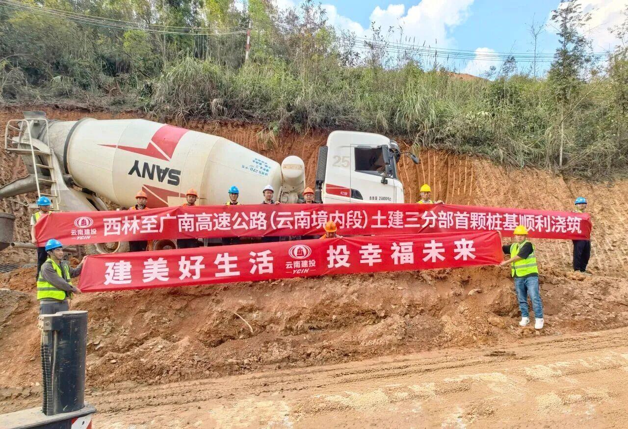 近日,西广高速(云南段)土建三分部首颗桩基浇筑完成,桥梁工程迈入实质性施工阶段。