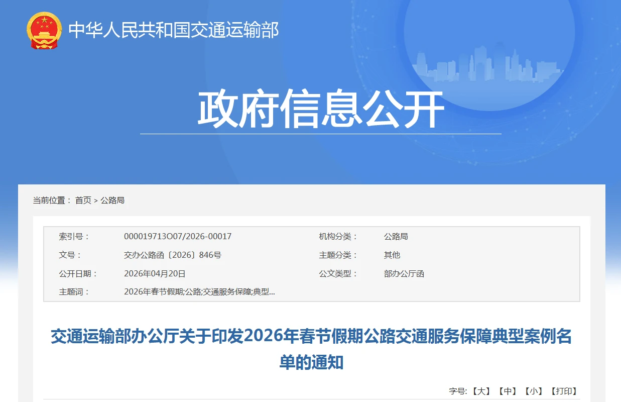 来源:交通运输部       2026-04-22 15:45 【字体: